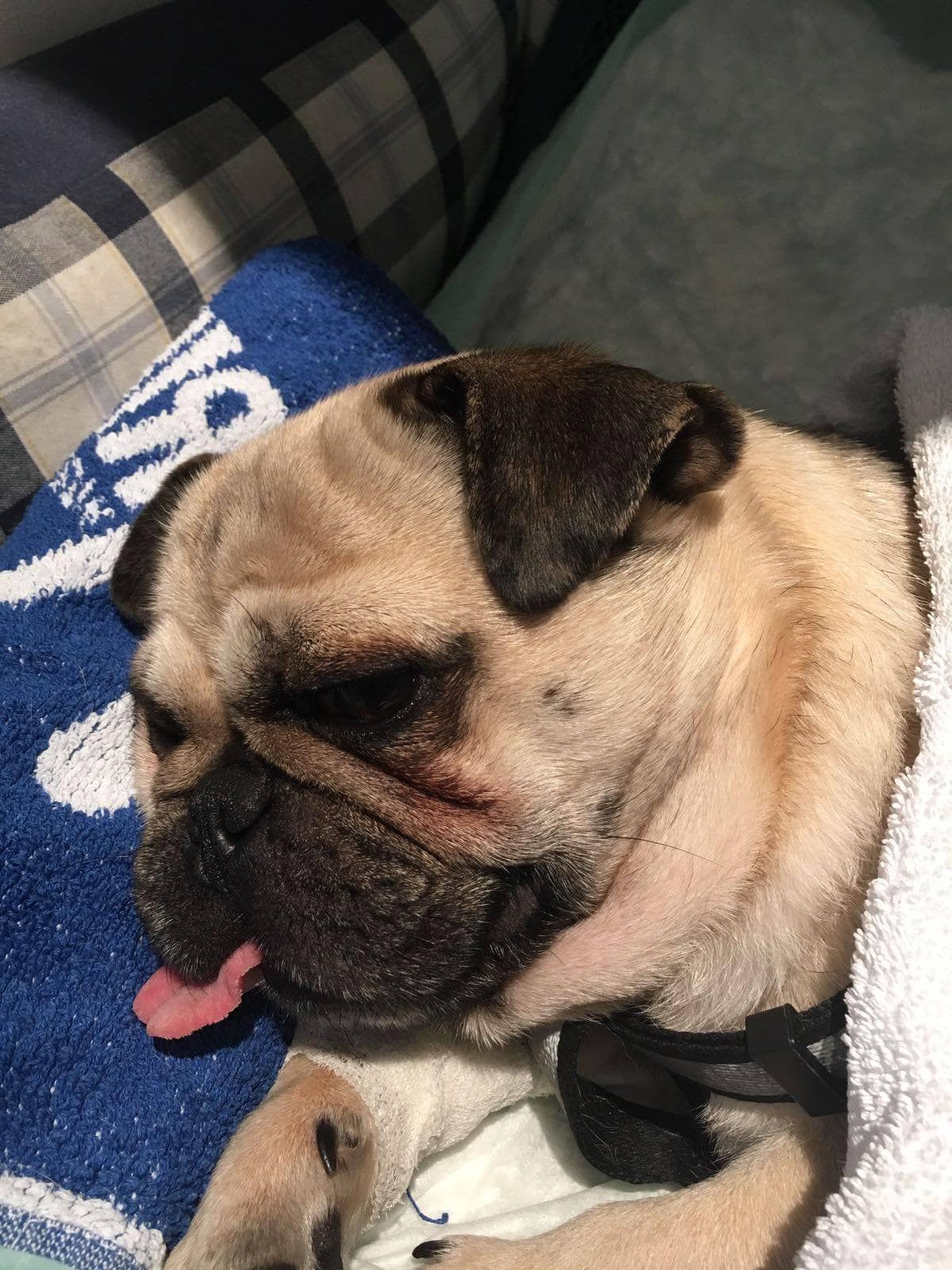 Hola!! Soy Chivo y como veréis estoy recién operado. A qué no adivináis de qué? Pues a mi miedo me da mirar para abajo porque me temo lo peor. Pero vamos que yo he aguantado tumbado ahí, los 10 minutos de la foto, soy un torbellino y ya estoy corriendo como un loco, no hay forma de pararme, ni la anestesia puede conmigo